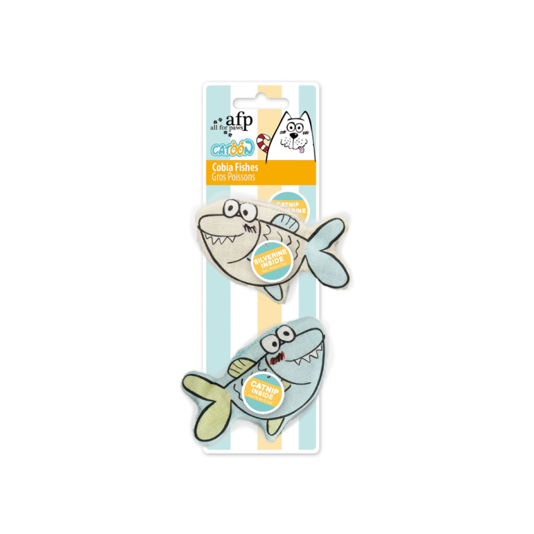 2 små bløde bomuldsfisk fyldt med catnip og matatabi som vil vække din kats indre tiger.