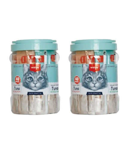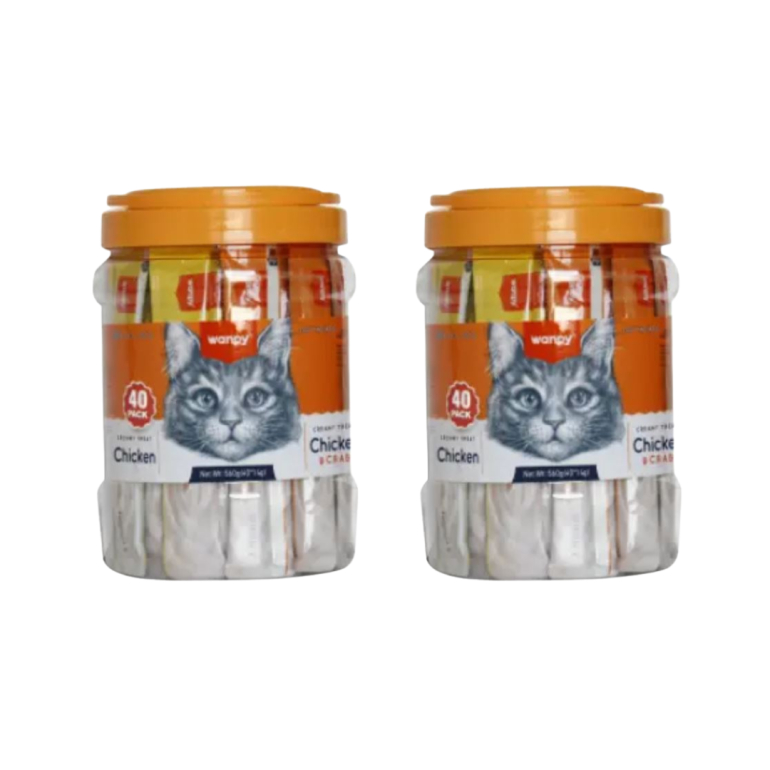 2 spande med Wanpy cremede snacks, kylling - 80 tuber i alt! Forkæl din kat med disse lækre, cremede snacks, der kommer i to varianter: ren kylling og kylling med krabbe. Hver spand indeholder 40 tuber, ideelle til daglig forkælelse. Og du sparer ved at købe 2 spande!