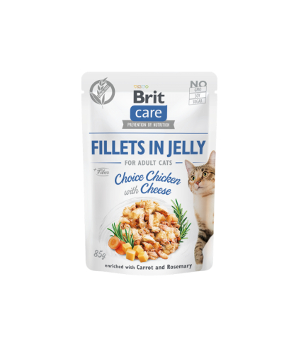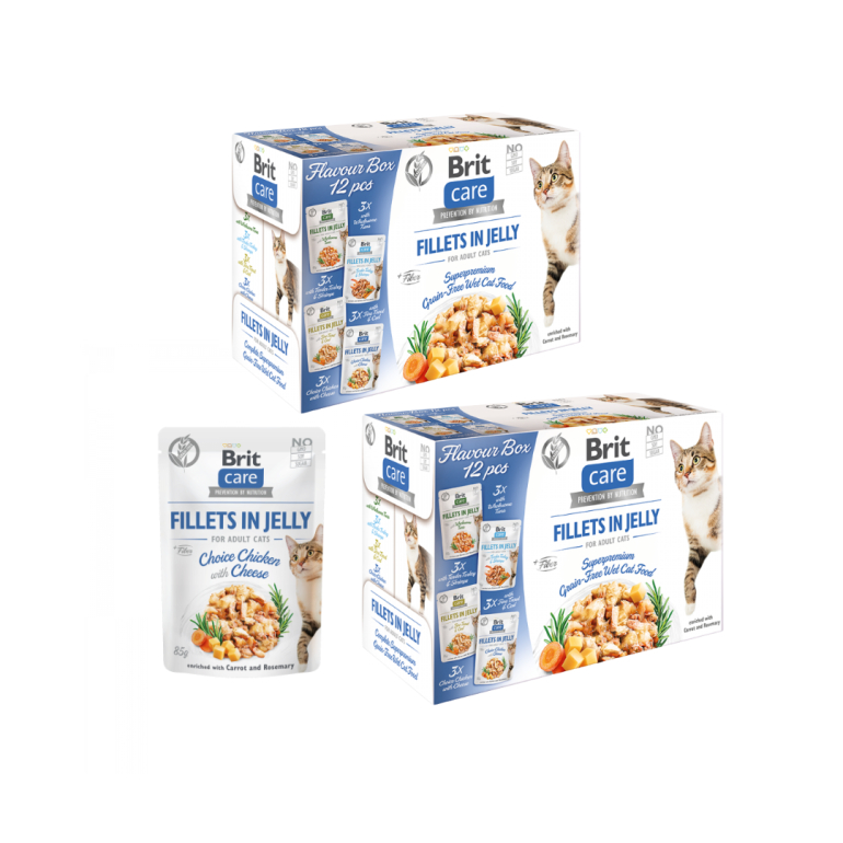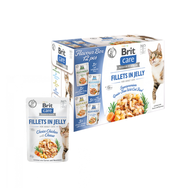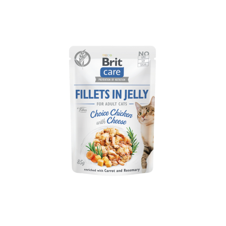 Sammensætning: 85 % kød i fileter (62 % kylling, 15 % lever, 8 % tun), bouillon, 3 % gulerødder, 0,5 % rosmarin, mineraler, ærtestivelse.