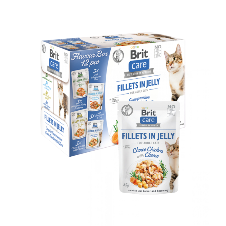 Sammensætning: 85 % kød i fileter (62 % kylling, 15 % lever, 8 % tun), bouillon, 3 % gulerødder, 0,5 % rosmarin, mineraler, ærtestivelse.