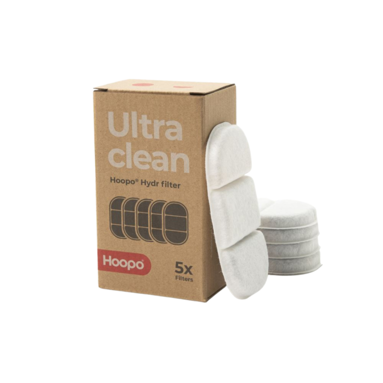 Ultra Clean-filtrene til Hydr-vandfontænen har et 4-kanalssystem. Filterets ydre bomuldslag fanger hår og krummer. Og de tre aktive filtre (aktivt kul, nanopartikler og ionisk harpiks) dræber bakterier og renser drikkevandet. Filtrene tilbyder et perfekt supplement til UVC-bakteriedræbende lampen, der holder Hydrs drikkevand friskt, rent, blødt og velsmagende.