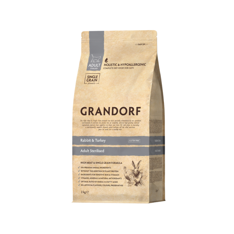 Sammensætningen er rig på kanin og kalkun, med primær base af protein. Den giver alle de essentielle aminosyrer til at tilfredsstille det ernæringsmæssige behov for kød hos din kat for at hjælpe med at opretholde et sundt liv