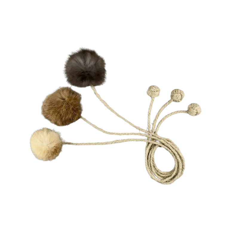 Pelsbolden af ægte kaninpels er ultra blød og sjov at fange. Den ekstra lange snor med en knyttet "abehånd" i enden er så robust, at selv den vildeste kat kan lege med legetøjet uden problemer.