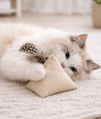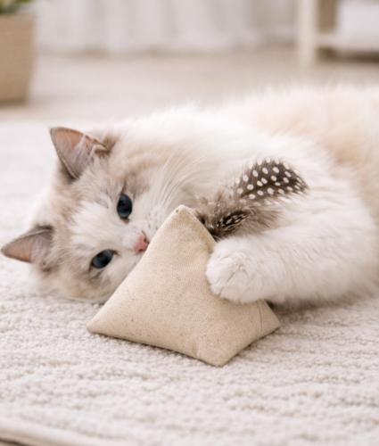 Velkommen til vores sortiment af sjovt og sikkert kattelegetøj – skabt for at tilfredsstille din kats naturlige behov og give dig den ro i sindet, der kommer med at vælge kvalitet og omsorg for både din kat og planeten.