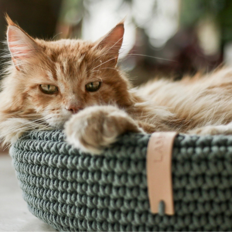 En håndlavet kurv fuld af elegance. Et smagfuldt sted til din kat og et elegant supplement til dit interiør. Coco-kurven er designet til en behagelig lur og lavet af højkvalitets Oeko-Tex bomuldssnor. Derudover har bunden af kattekurven en blød pude, som giver din kat en meget komfortabel afslapning, når den hviler sig.