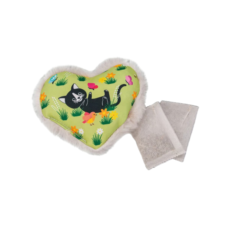 Fås med valerian eller 4catsnip (katteurt & sølvvine/matatabi). Dette hjerte er med baldrian.