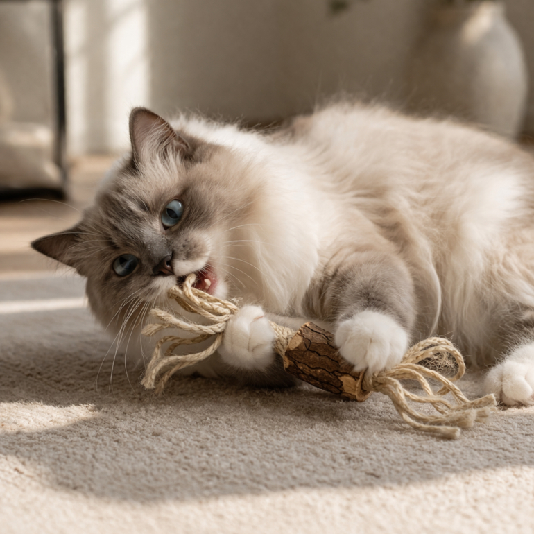 Lad din kat lege med nogle af naturens egne vidundere, så den undgår plast og kemikalier.