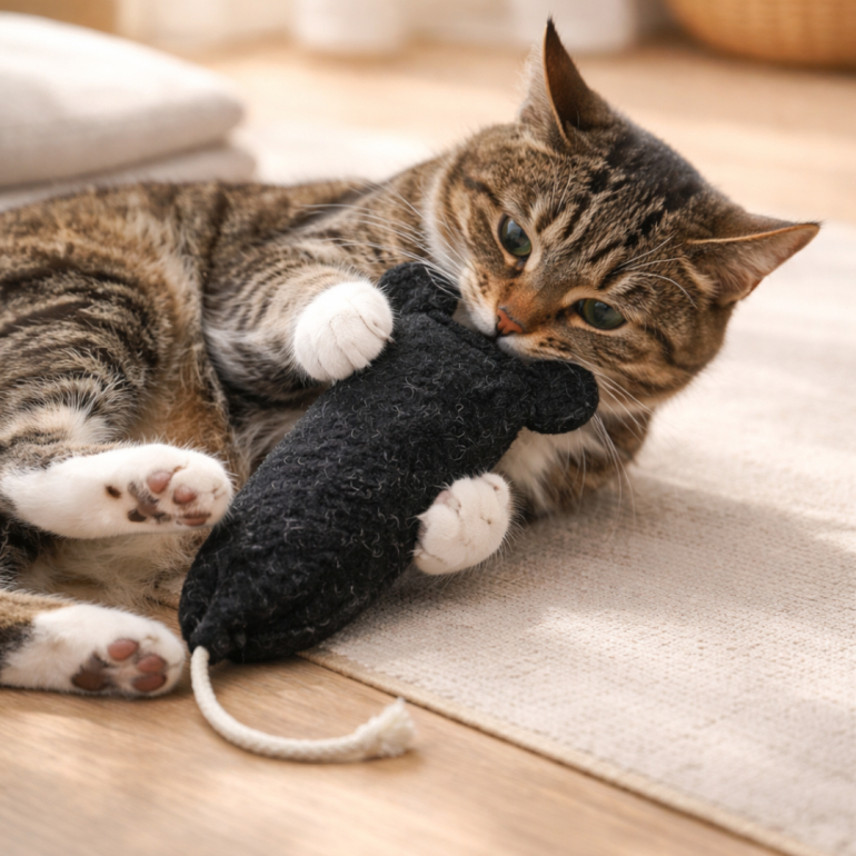 Håndlavet uldmus som er helt uimodståelig leg for din kat.