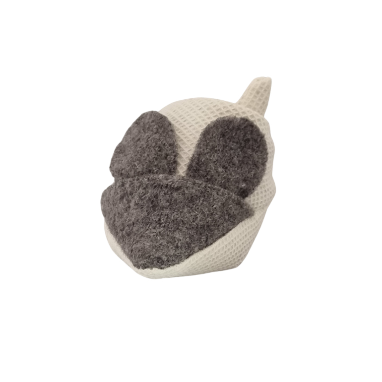 Vores søde Mausbert er fyldt med vidunderligt duftende økologisk katteurt/catnip og økologiske speltkerner, altså helt naturligt indhold. Stofmusen er lavet af økologisk bomuld og mulesingfri OEKO-TEX jomfruuld. Som 2-i-1 legetøj er det på den ene side en nuttet nusse-pude, og på den anden side kan den hurtigt forvandles til en sjov legemus med et par enkle trin (knyt blot hjørnerne sammen).