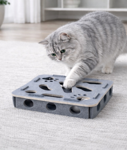Velkommen til vores sortiment af sjovt og sikkert kattelegetøj – skabt for at tilfredsstille din kats naturlige behov og give dig den ro i sindet, der kommer med at vælge kvalitet og omsorg for både din kat og planeten.