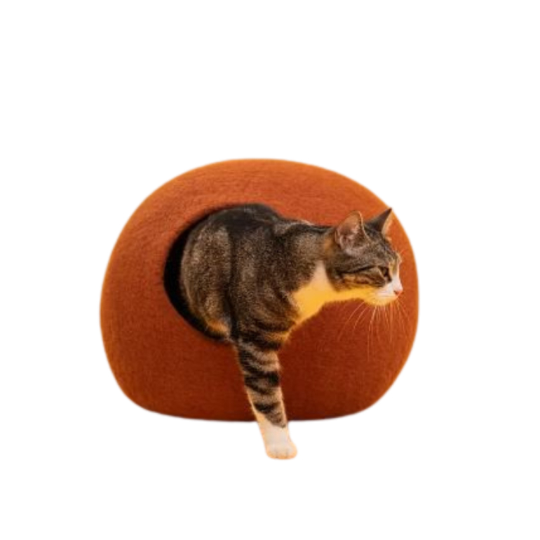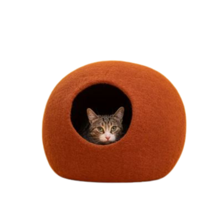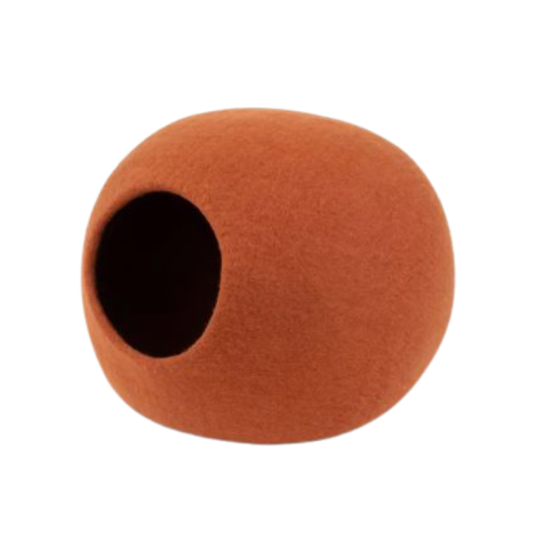 Denne eksklusive kattehule er fremstillet i høj kvalitet af det reneste jomfruuld. Det solidt filtede materiale giver stabilitet på højeste niveau. Dette sikrer mange års nydelse både for katten og -ejeren. Farven er den smukke terracotta eller som også beskrives som en smuk gylden rav-farve.