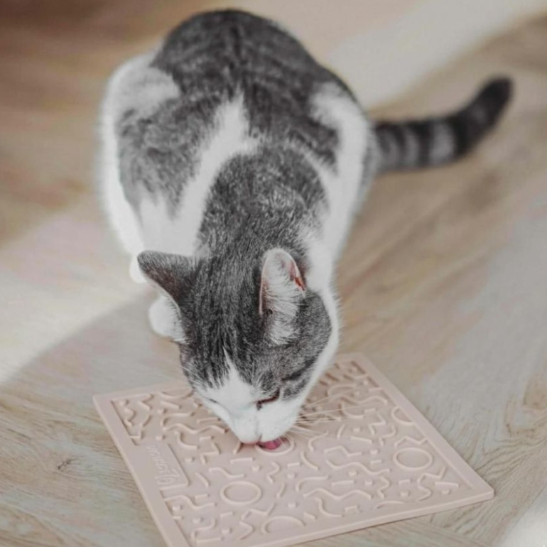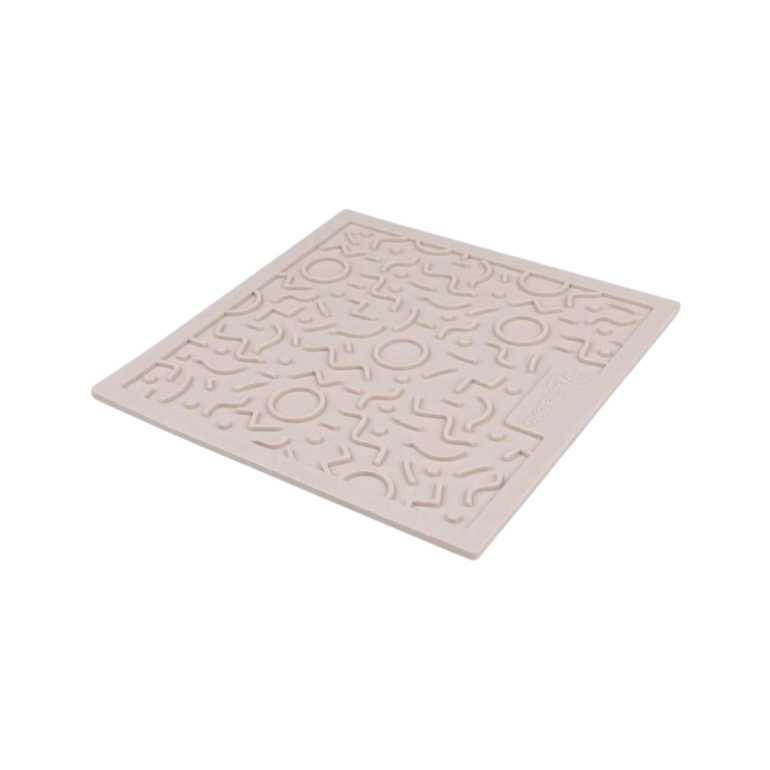 Den stilfulde beige Quest slikkemåtte fra District70 er designet til katte, der spiser hurtigt, eller som fortjener en ekstra stimulerende snackoplevelse. Ved at fordele vådfoder, tørfoder eller godbidder i måttens forskellige mønstre får katten en mere rolig og tilfredsstillende snackpause, som samtidig understøtter mental afslapning og bedre mundhygiejne.