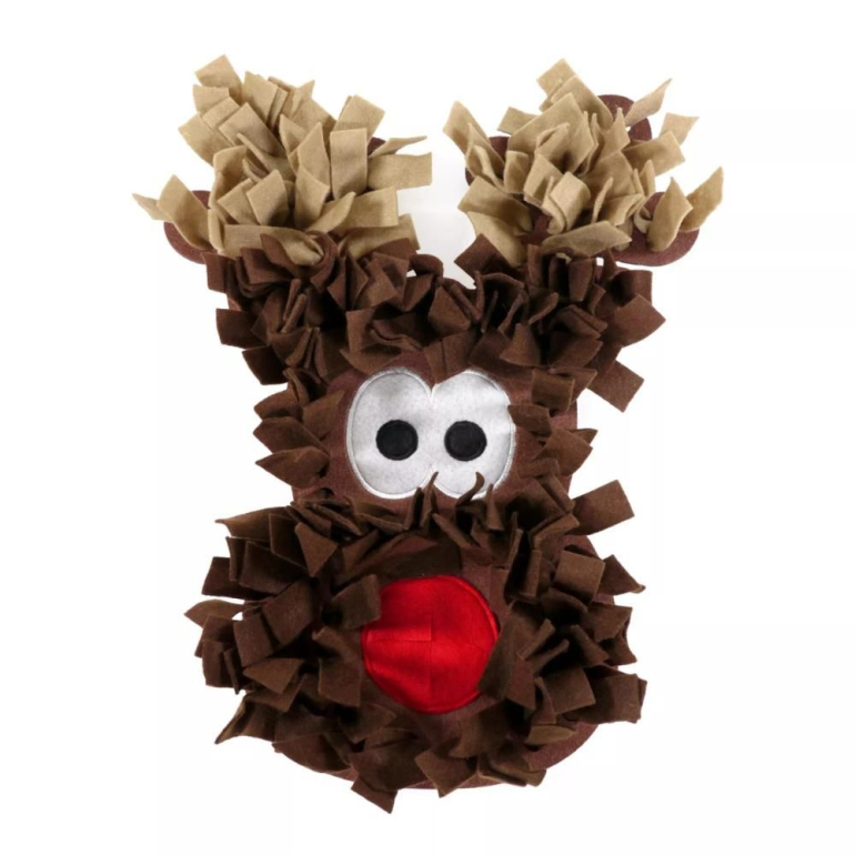 Skab sjov og aktivering for din kat denne jul med en snusemåtte, udformet som et sødt rensdyr. Denne 38 cm lange måtte er lavet af blødt filtstof, trådet gennem en robust filtbund, og giver masser af gemmesteder til din kats yndlings tørfoder eller godbidder. Den røde rensdyrnæse har endda et hemmeligt sted til ekstra godbidder!